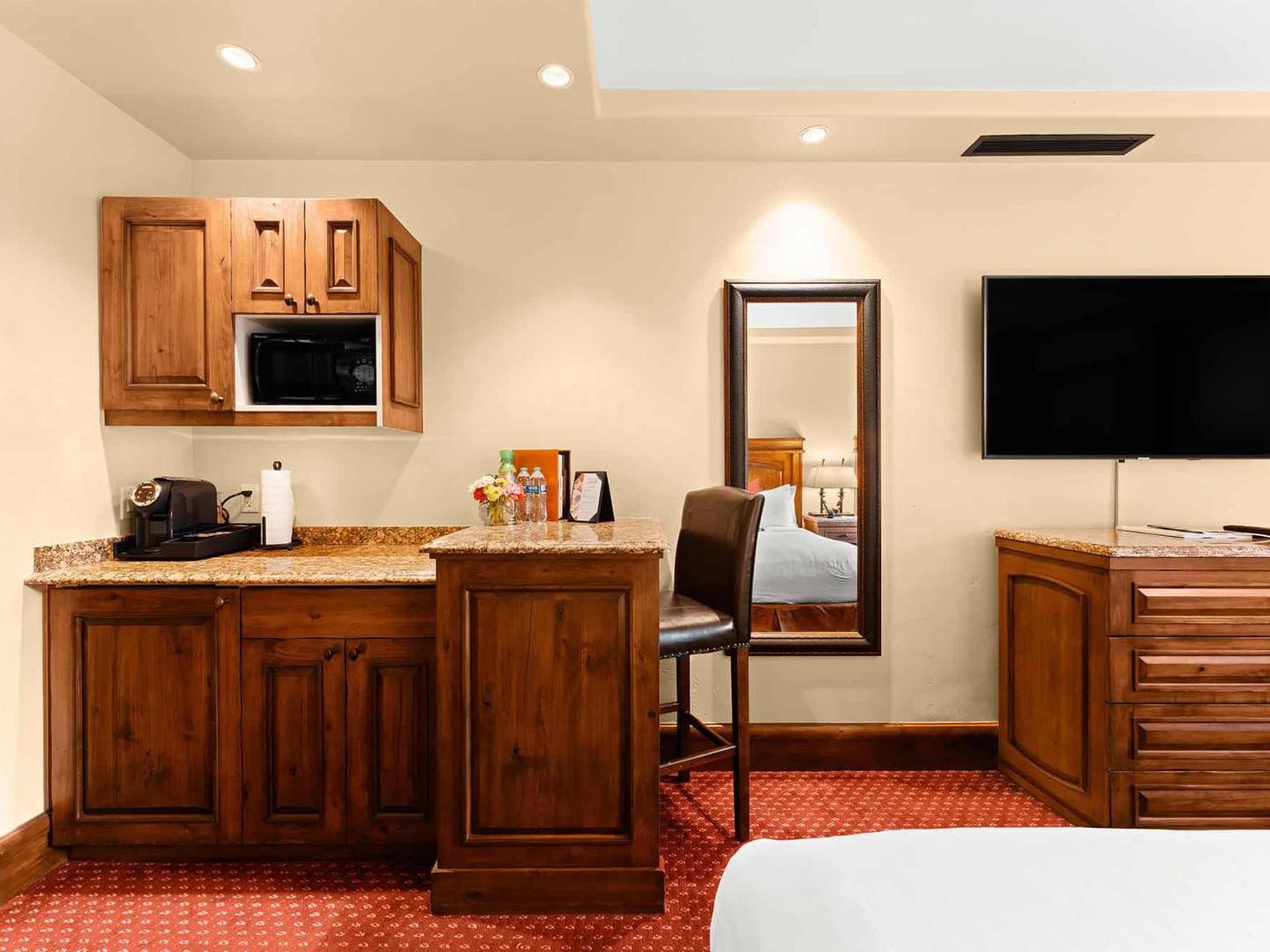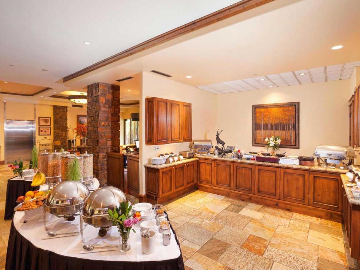 The luxurious and spacious lobby offers stunning mountain views and is reminiscent of a plush, lodge-style living room with oversized chairs, leather sofas, floor-to-ceiling stone fireplace and small wine bar. Guests also enjoy the complimentary daily Tivoli breakfast to start their adventurous day off right.