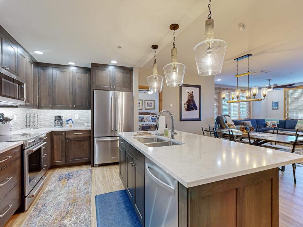 Torian Plum's vacation rentals are spacious and open with full kitchens, a dining area, a cozy living room with fireplace and private balcony offering inspiring views of the surrounding mountains or bustling village. Enhancing your Steamboat vacation experience, the extensive list of property amenities includes a large outdoor swimming pool, multiple hot tubs, sauna, fitness facilities, and various gathering spaces both indoors and outside.