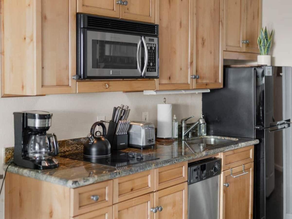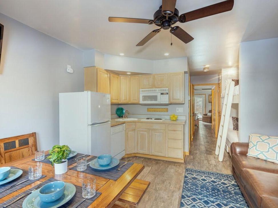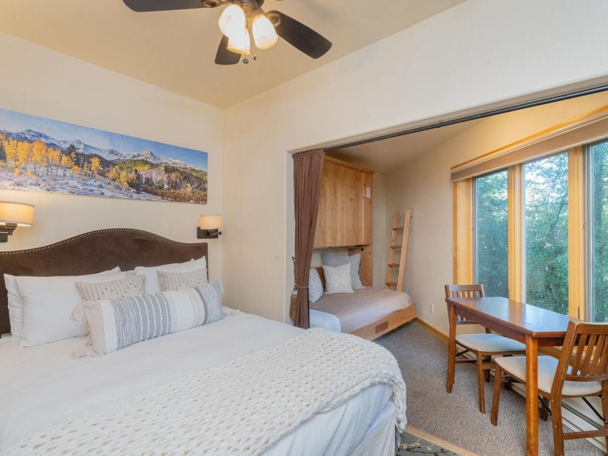 These unique accommodations offer a variety of bedding options to please both families and groups of friends. Most units include a cozy living room area with many offering a fireplace and sleeper sofa or Murphy bed in the living room. Some of the Viking Lodge rentals also include an additional bedding area in the hallway featuring built-in bunk beds that are ideal for kids. A cozy kitchen and dining area is open to the living space. Guests enjoy access to the property's outdoor heated swimming pool and hot tubs which are a favorite for relaxing after a day of fun in Telluride.