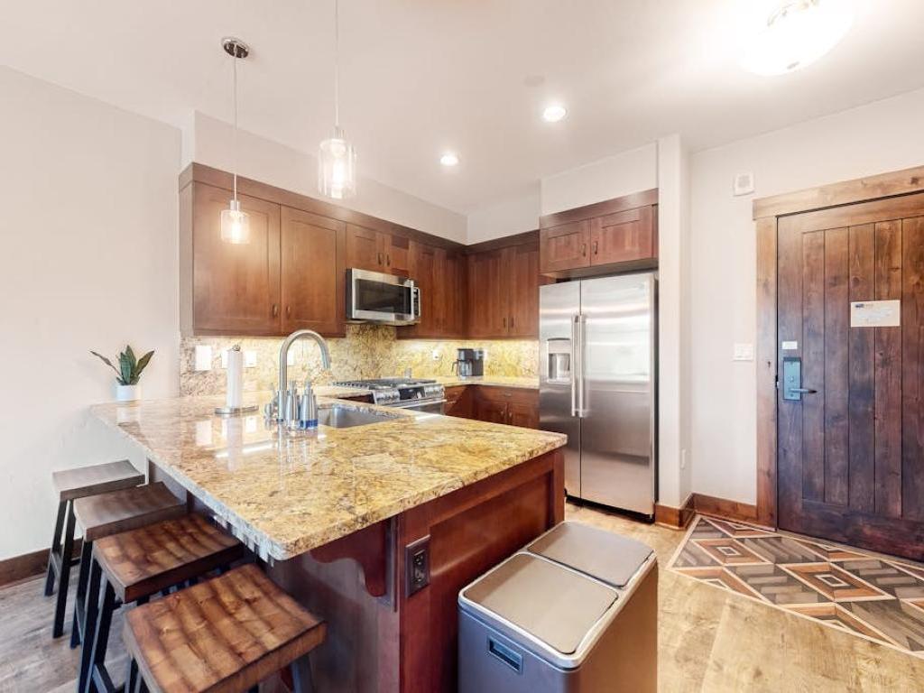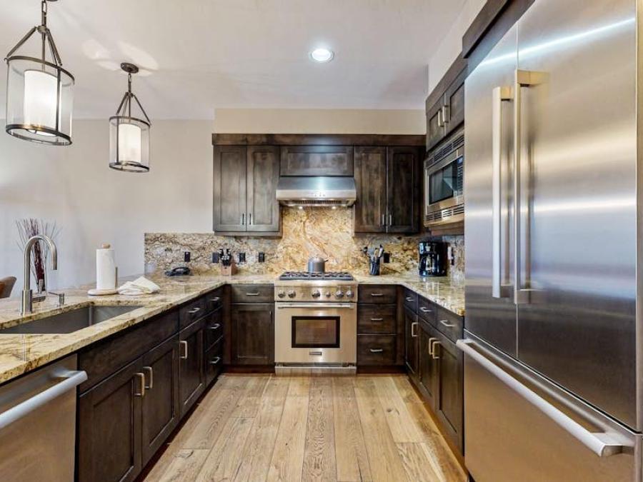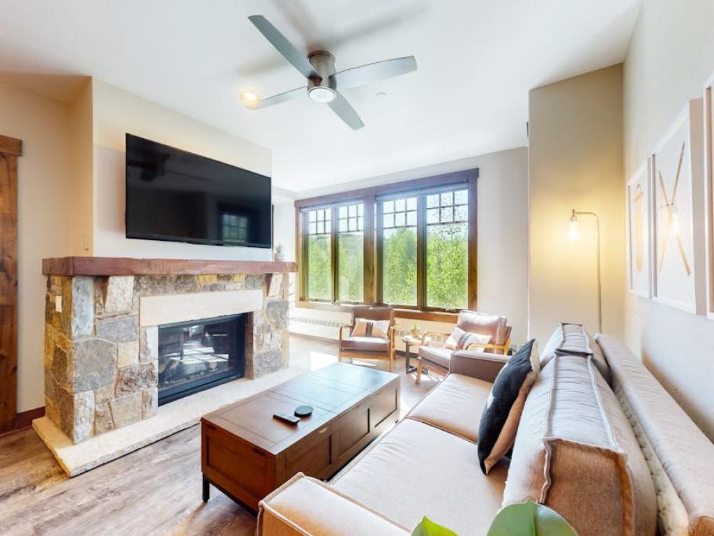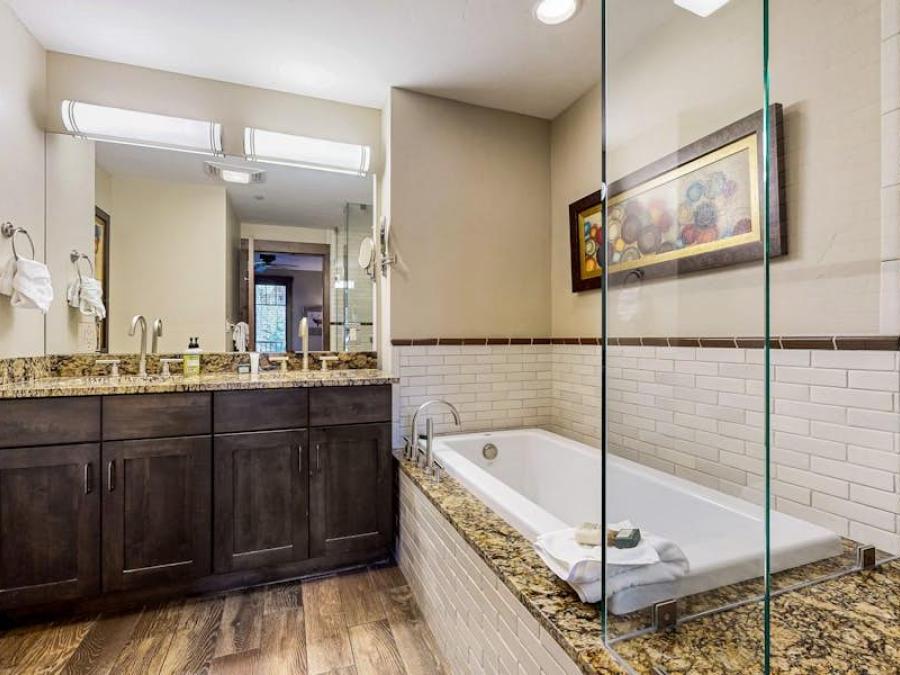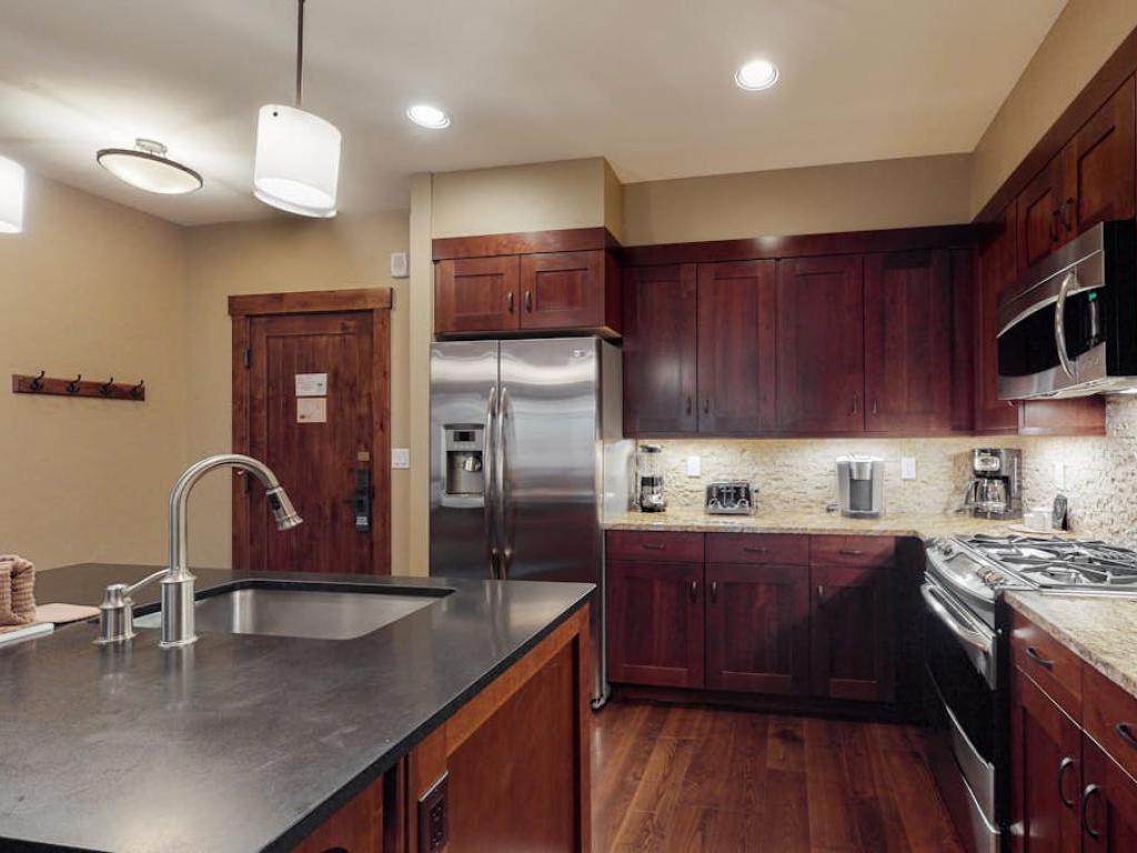 Comfortably appointed bedrooms, with master suites that include a private bathroom with soaking tub and stall shower, are equipped with quality bedding and linens. Guests will enjoy breathtaking views of the surrounding mountains or the slopes from the private balconies.