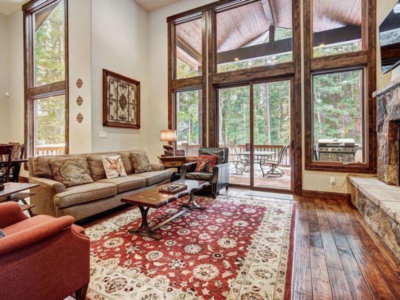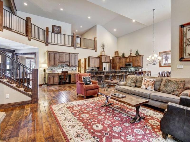 Surrounded by inspiring mountain views and the pristine Colorado wilderness, Whispering Pines Retreat offers a true taste of the great outdoors where you will enjoy an authentic mountain vacation experience. Located just five miles from the heart of downtown Breckenridge, this beautifully appointed 5 bedroom private residence with 5 full and 2 half bathrooms features two gathering areas providing plenty of space for everyone to relax and spread out. Ideally designed for large or multi-family groups of up to 14 guests, your party will explore the Rocky Mountains from the comfort of this luxurious home in an idyllic setting that is just a few minutes from all of the action.