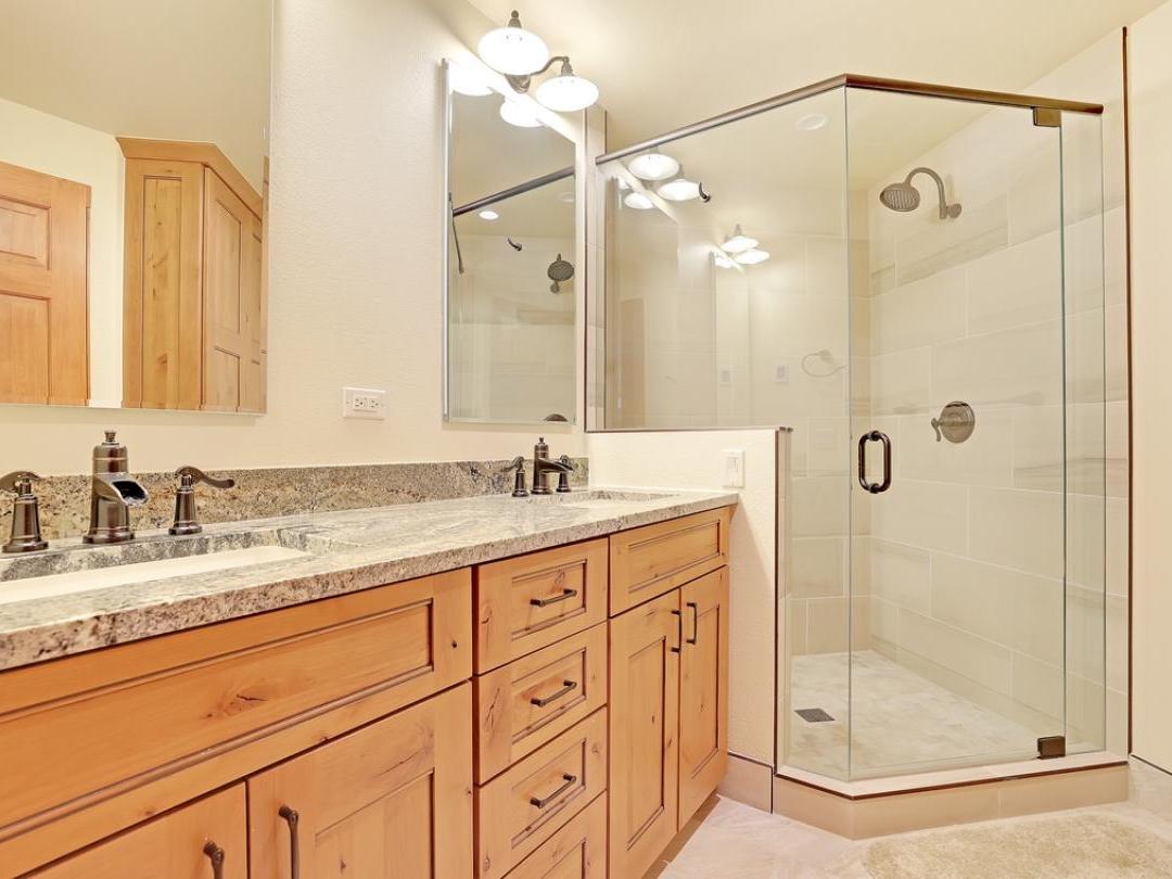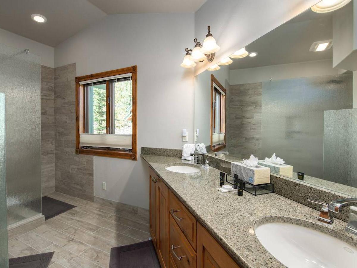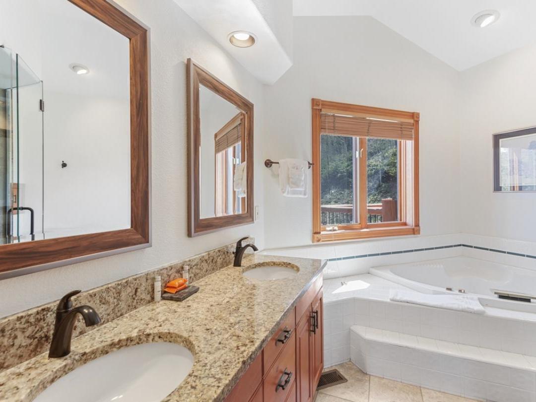 Living spaces are open and inviting with comfortable sofas, gas fireplaces and sunny windows, while the neighboring kitchens are fully equipped with all the culinary necessities. Perfect for gathering the whole crew, dining areas boast tables large enough for a group meal or game night. A balcony or patio is standard, and offers gorgeous alpine views, seating and in some, a gas grill. Family rooms, media rooms or a den can also be part of the layout, providing another space to congregate after a thrilling day on the mountain or exploring town. Some of the Woods Townhomes also feature a relaxing private hot tub, designed to soak your tired muscles and refresh your body for whatever the next day brings. There are four elegant yet comfortably furnished guest bedrooms, with the master boasting a private gas fireplace, a charming balcony and a spacious luxurious bathroom.